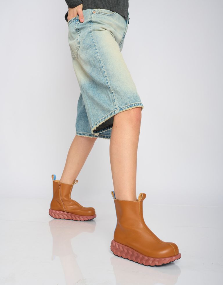 מגפוני עור עם רוכסן פנימי וסוליה מסיבית. עיצוב קלאסי, גימור גראנג'.