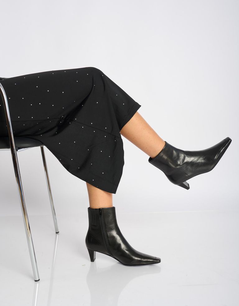מגפוני עור בטקסטורת קרוקו מבריקה, רוכסן צד ועקב רחב לנוחות מקסימלית. מגפיים עם נוכחות שהיא בליט-אין.