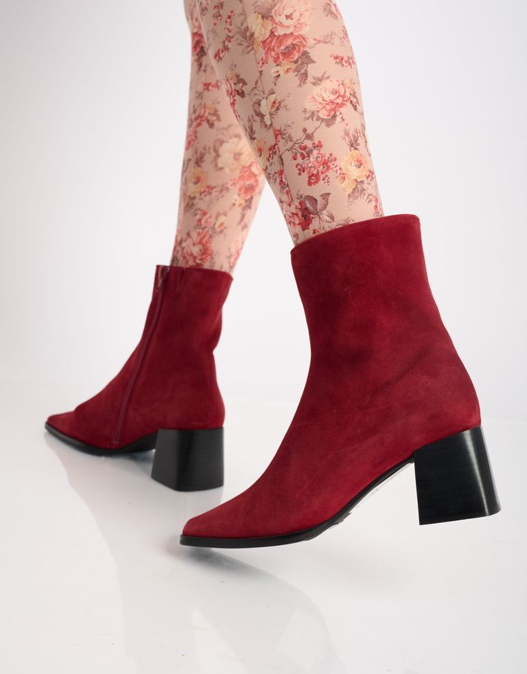 מגפיים בסגנון המערב הפרוע, עם עקב קטן יציב, חרטום אלגנטי ותפרי קאובויז קלאסיים.