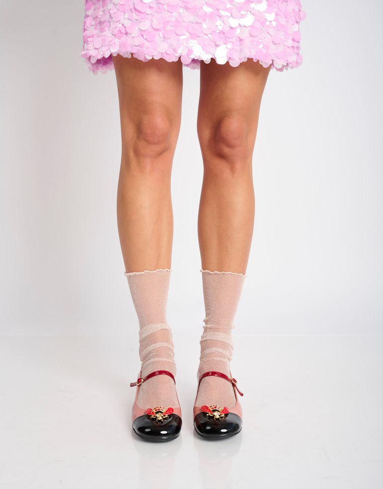 נעלי מרי ג'יין עם עקב קטן וקוקטי בשילובי צבעים הרמוניים, כמו שרק צ'י מיהרה יודעת לעשות. הנעליים עשויות עור במראה מבריק, בעלות חרטום מלבני ומגיעות עם רצועת אבזם דקה להשלמת הלוק הנוסטלגי אך סופר מעודכן הזה.