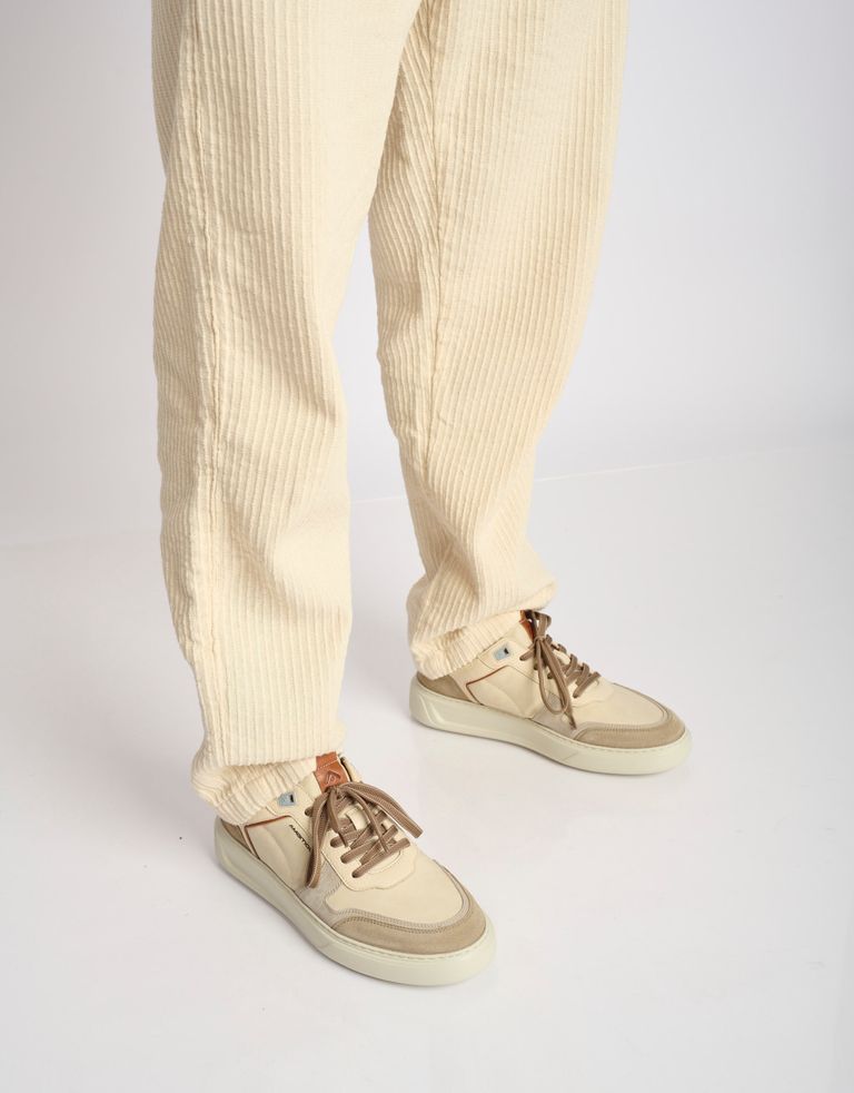 סניקרס נמוכות בעיצוב אלגנטי, מיוצרות באיטליה ועשויות משילוב של זמש ועור.