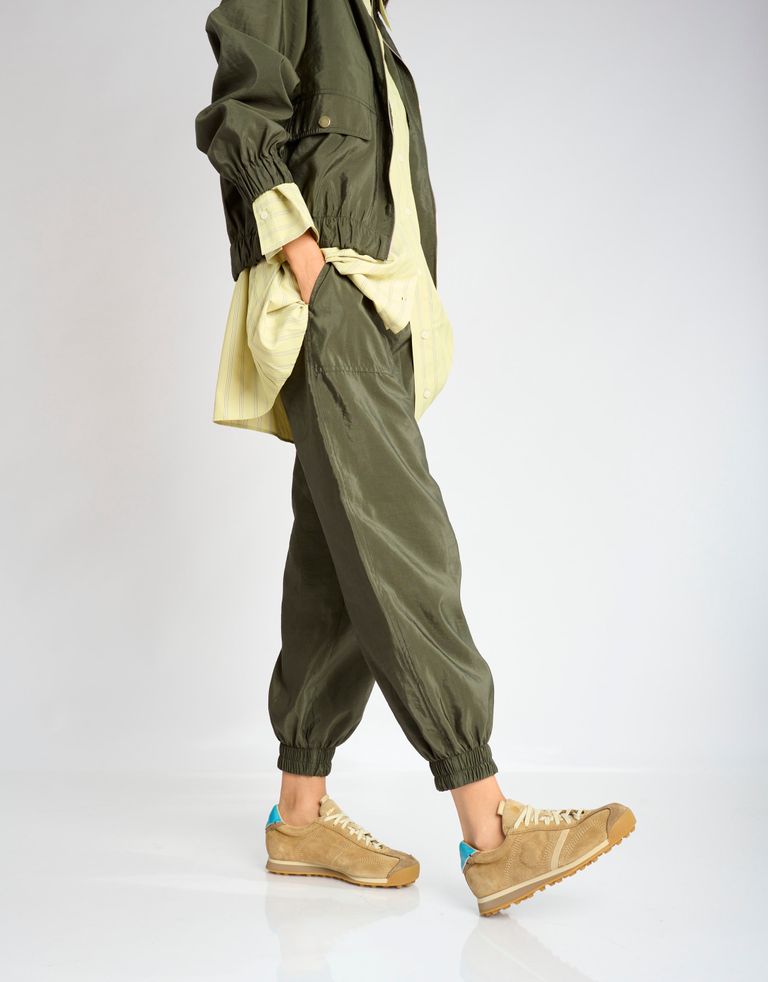 נעלי סניקרס עם גפה ארוגה באפקט רשת, בשילוב זמש וסוליית גומי בגוון קרמל.