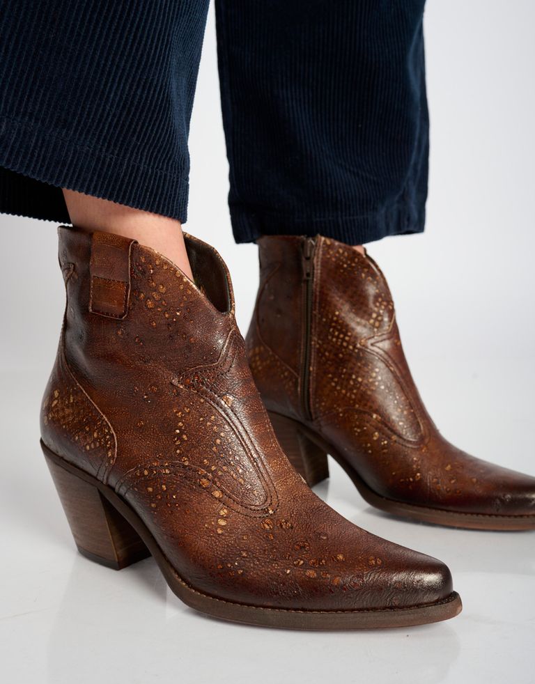מגפוני עקב מוקפדים ואלגנטיים, עשויים עור ומאובזרים ברוכסן אחורי.