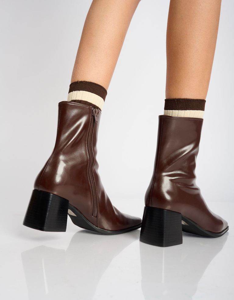מגפוני עקב עם חרטום שפיץ ועקב קיטן (kitten heel), קלאסיות ואלגנטיות. מאסט בכל ארון.