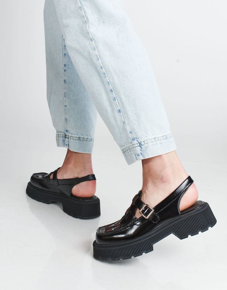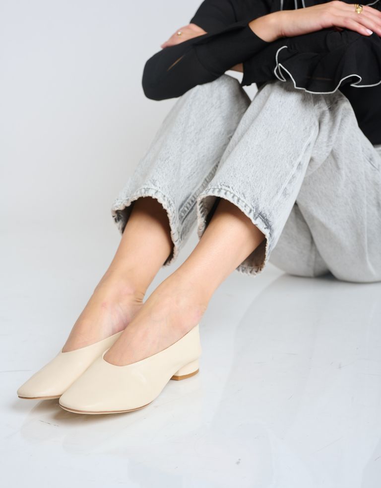 נעלי עקב מעור עם חרטום מרובע ומראה שהוא שיא האלגנטיות.
