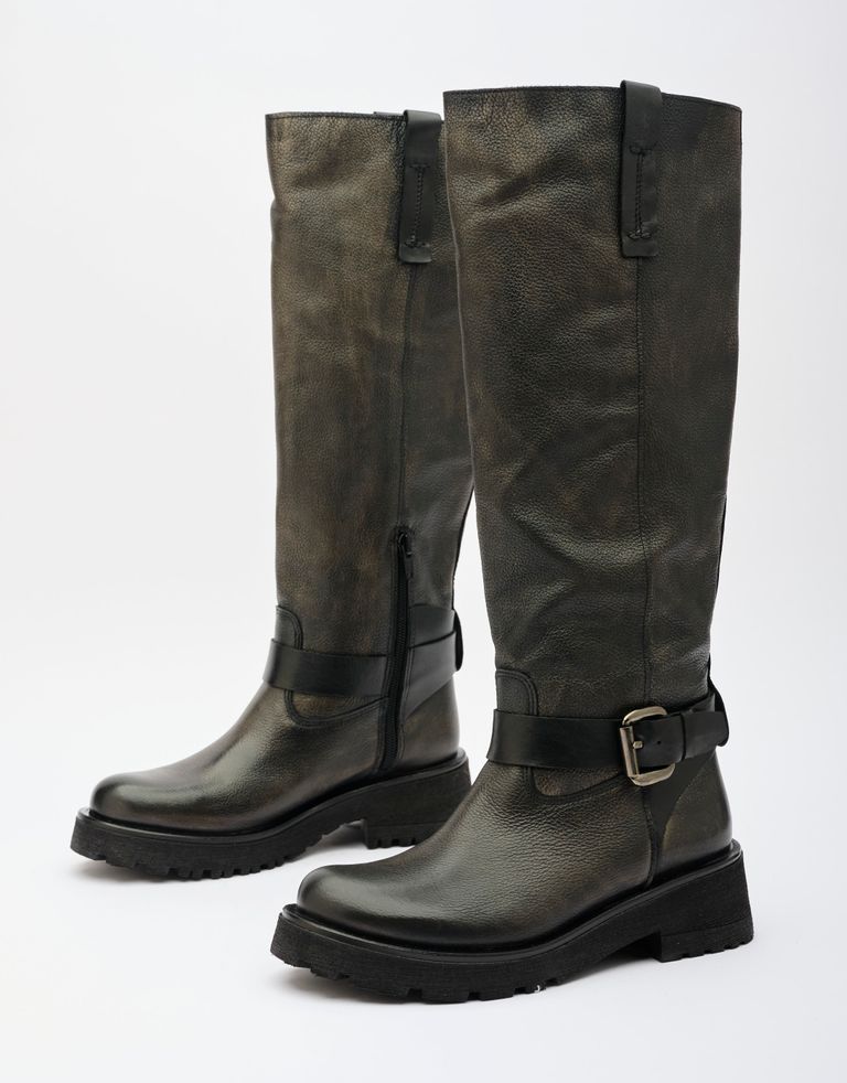 נעליים עם פלטפורמה קלה ועקב צ׳אנקי, עם סגירת אבזם ולולאות מתכת – קאובוי סטייל.