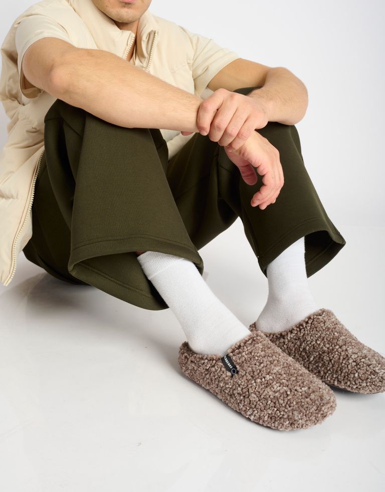 כפכפי עור בעיצוב מפנק עם גפה בגווני שלכת חורפיים ובטנה פרוותית מצמר מורינו (צמר כבשים) נעימה ומחממת. מושלמים לימים קרים בבית או בחוץ.